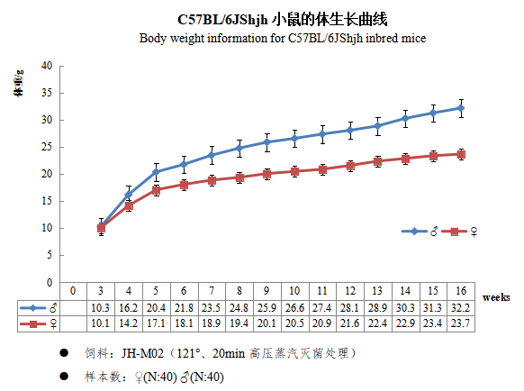 该品系源自1921年C.C. Little从Abby Lathrop得到的宠物小鼠开始近亲交配,育成了数个近交系。以57号母鼠和52号公鼠交配为起源者标为C57,C57中毛色固定为巧克力色的称为C57BR,固定为黑色的称为C57BL;1937年Little将维持的C57BL 第6组亚系定名为C57BL/6,第6组定名为C57BL/10;1948年由Hall在F24代时引入JAX并逐步形成C57BL/6J亚系。上海吉辉(Shjh)2017年引入该品系,经子宫切开术生物净化后建立SPF级核心群和生产群。