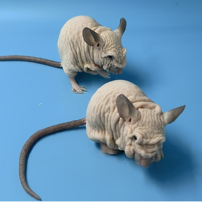 毛色: nu/nu:Hairless,nu/+: Albino